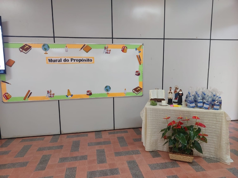Durante a celebração, cada estudante recebeu um kit especialcontendoágua, biscoitos, uma canetae uma medalha de Nossa Senhora Auxiliadora, abençoada para acompanhá-los no dia da prova. A caneta, símbolo do esforço e da caminhada de cada aluno, foi utilizada pela primeira vez para eles se identificarem enquanto pessoa nesse processo. Depois, eles preencheram o Mural de Propósitos, onde registraram seus sonhos e objetivos para o futuro.