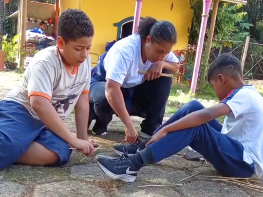 Momentos de roda de conversa, brincadeiras de roda, carrinho de rolimã, dança, casa de brincar, palitos, trabalhando o lúdico os atendidos confeccionaram brinquedo corrupio, trabalhando as cores, coordenação motora, meio ambiente.