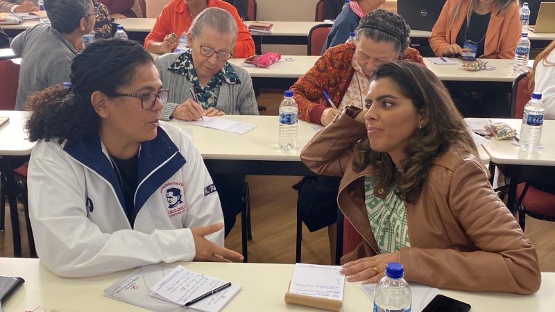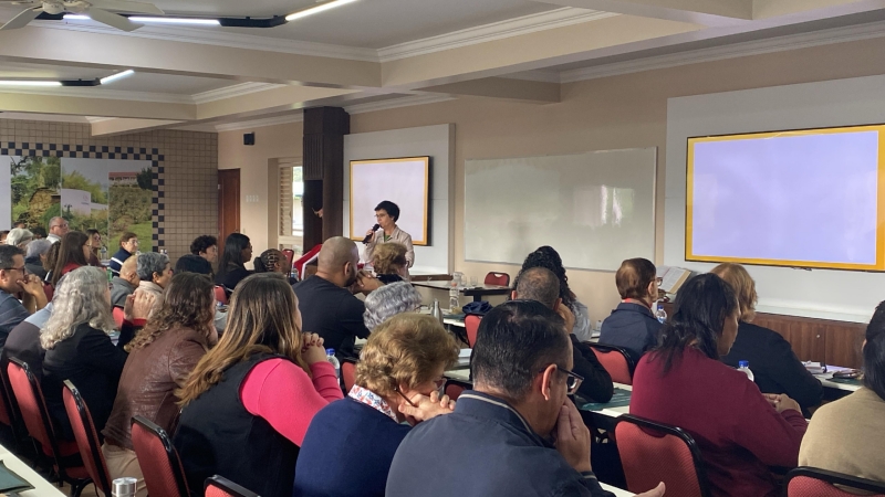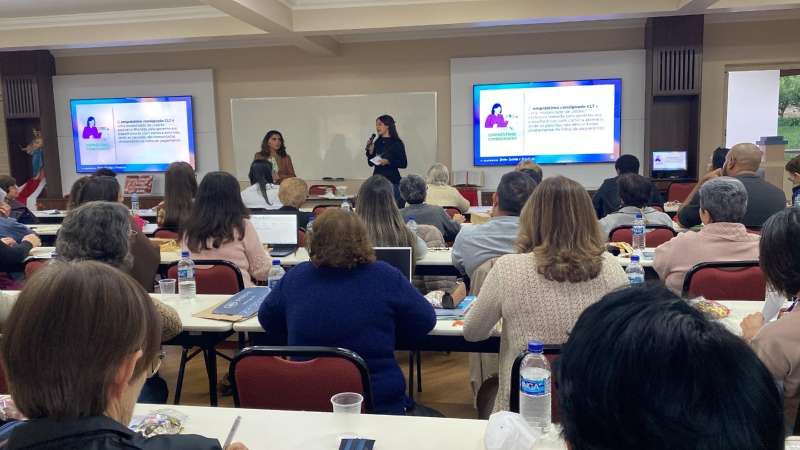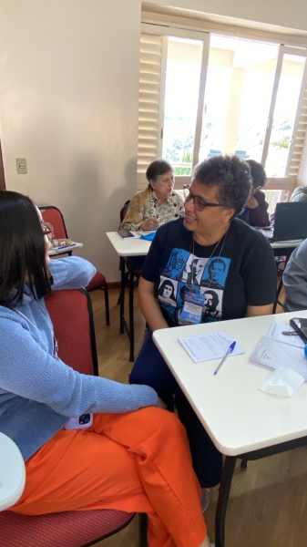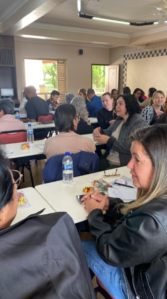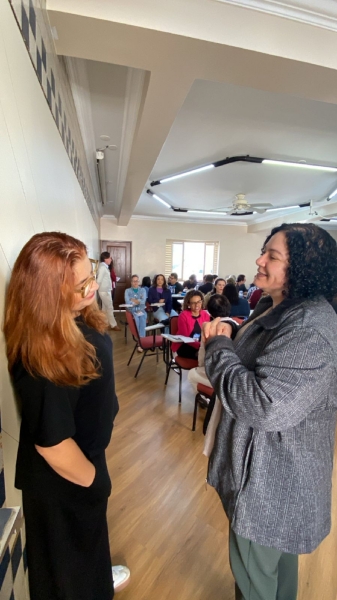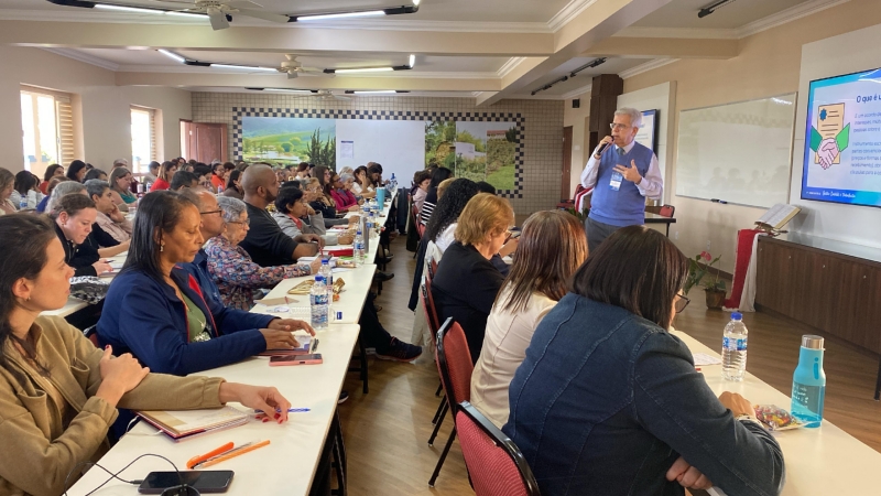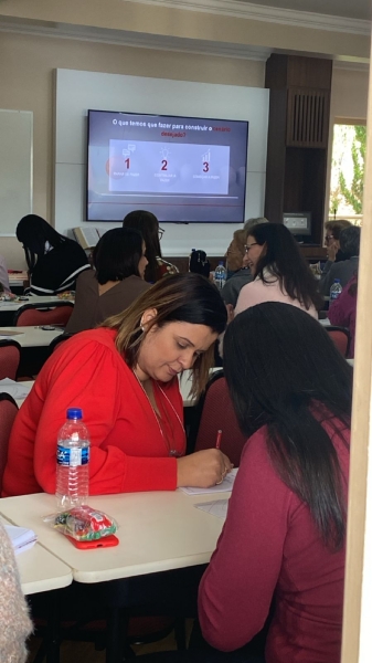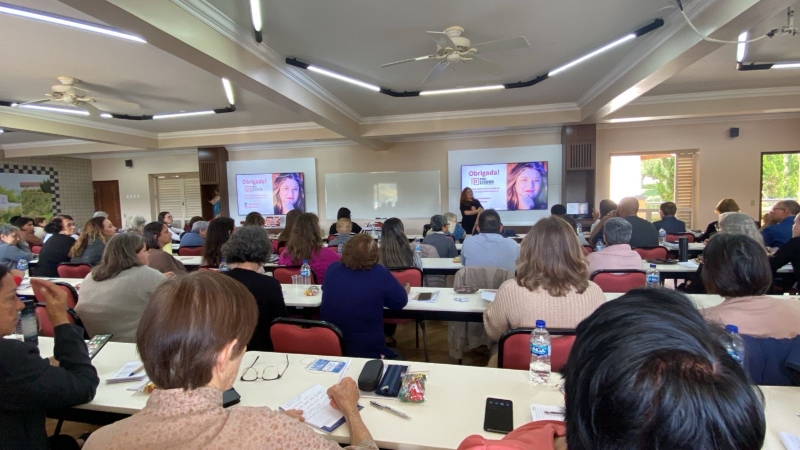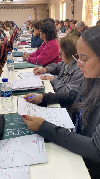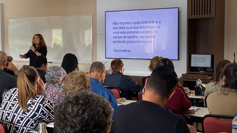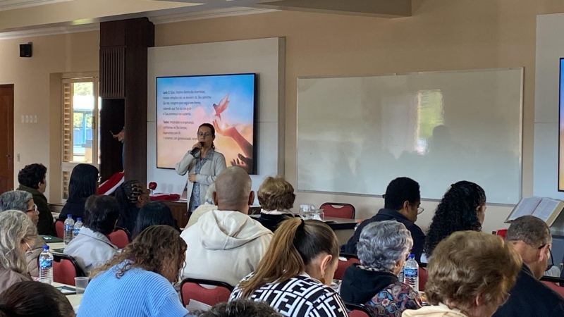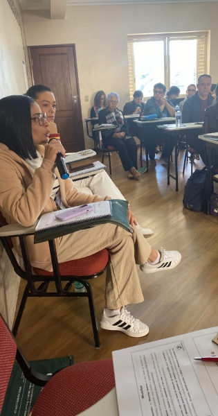 Colaboradores/as do próprio Retiro das Rosas tiveram a oportunidade de agregar conhecimentos em sua participação. “Foi uma experiência enriquecedora, pois contribuiu para o aprimoramento dos meus conhecimentos na área que atuo e de outros setores. Além disso, os momentos de integração e reflexão com os/as demais Colaboradores/as reforçaram ainda mais o comprometimento com os valores da Instituição”, disse Elaine Benitez, que atua no Departamento Pessoal do Retiro.
