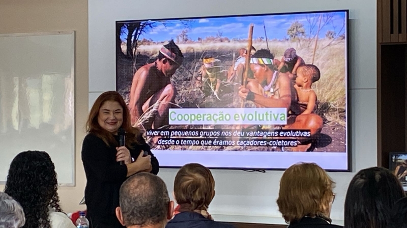 No primeiro dia, as atividades do grupo se concentraram no tema “Desenvolvimento Humano e Organizacional”, apresentado pela assessora Patrícia Lisboa, professora, palestrante, comunicóloga, psicanalista, master coach, head trainer e mentora certificada. Em sua abordagem, Patrícia ressaltou: “O que diferenciará o profissional do futuro será o seu repertório”, reforçando ao grupo a importância do pertencimento, da confiança e da cooperação, passando pelas chamadas hard skills e soft skills. Em um momento de dinâmica, propôs que, em duplas, os/as participantes refletissem sobre a pergunta: “O que temos que fazer para construir o cenário desejado?”, discutindo o que precisavam parar, continuar e começar a fazer, firmando um compromisso mútuo para avaliação futura e de curto prazo de suas ações.
