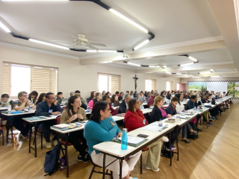 Entre os dias 10 e 12 de junho, o Retiro das Rosas, em Cachoeira do Campo-MG, acolheu o 1º Seminário de Gestão Contábil e Trabalhista da Inspetoria Madre Mazzarello-BMM. O evento contou com a presença de 110 participantes vindos/as de todas as regiões que compõem a Inspetoria, reunindo as Equipes Administrativas das Escolas, Obras Sociais, Missão Indígena, Retiro das Rosas, Casas de Encontros, de Repouso e de Formação, juntamente com integrantes da própria Sede Inspetorial. O grupo foi formado por Irmãs e leigos, com a presença de Diretoras/es, Coordenadoras/es e Colaboradores/as Administrativos/as, expressando a riqueza da comunhão e da corresponsabilidade na Missão Educativa das Filhas de Maria Auxiliadora.
