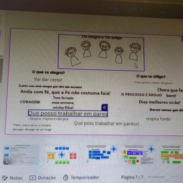 Na segunda-feira, 16 de setembro, as educadoras Andréia e Magda participaram do 6° encontro/5ª aula da Formação para o Projeto Educomunicação em Ação Social, Módulo II, Gamificação e Cultura Maker com a professora Flávia Giffoni aprofundando nos temas Ferramentas, Prototipagem e Gameplay. Através de uma dinâmica no app Canva, provocou a interação dos participantes na partilha de sentimentos, desafios, expectativas, preocupações e possibilitando conhecer outras realidades que compartilham dos mesmos desafios, ampliando o olhar e reafirmando que o grupo forma uma rede de parceria para superar os desafios. O que parecia ser uma aula pesada, devido os assuntos abordados, se tornou prazerosa e dinâmica com a segurança que a professora transmitiu e as estratégias que utilizou para conduzir as socializações após as conversas em grupos.
