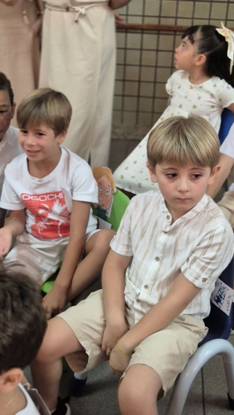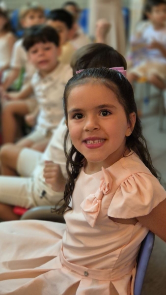 Assistimos juntos a um vídeo preparado com carinho, que retratava a passagem de um prédio para o outro, mostrando o apoio e o cuidado de toda a equipe, professoras, coordenação e crianças. Tivemos também a palavra da diretora pedagógica, Ana Paula Gerino, que trouxe uma reflexão sobre esse período tão importante na vida das crianças, que é a Educação Infantil. A diretora institucional, Irmã Rosa Idalia, falou sobre a bênção que é acompanhar cada etapa da vida dos filhos e, logo após, conduziu um momento especial de oração, no qual as famílias puderam abençoar seus filhos.