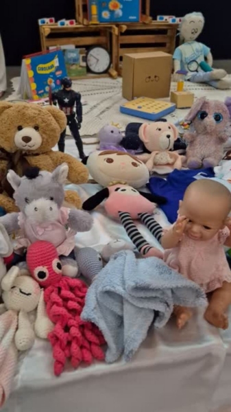 Iniciamos acolhendo as famílias, que foram convidadas a refletir sobre o percurso vivido pelas crianças, seus avanços, descobertas e jeitos singulares de aprender sobre o mundo. As crianças entraram carregando seus objetos significativos, símbolos de suas histórias, de suas infâncias e dos laços que as acompanharam até aqui. Cada passo, cada olhar e cada gesto revelavam a grandeza do caminho percorrido.