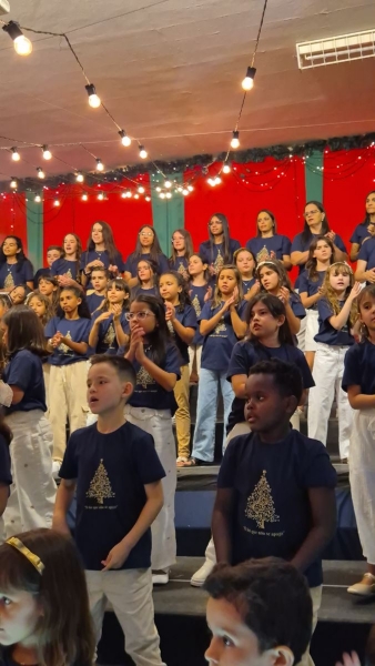 No dia 27 de novembro, nossa comunidade escolar se reuniu para celebrar a magia e a esperança do Natal em uma noite especial de encanto e emoção. A Cantata contou com a participação dedicada de alunos e colaboradores, que, com suas vozes, gestos e talentos, ajudaram a reacender memórias, despertar sentidos e revelar, mais uma vez, a beleza da verdadeira luz que habita este tempo.