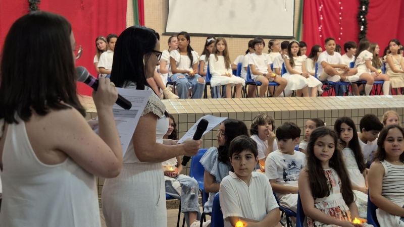 Famílias e educadores celebraram a chegada dos estudantes ao Ensino Fundamental II em uma cerimônia que destacou não apenas a mudança de segmento, mas também o crescimento, as conquistas e a luz que cada criança carrega.