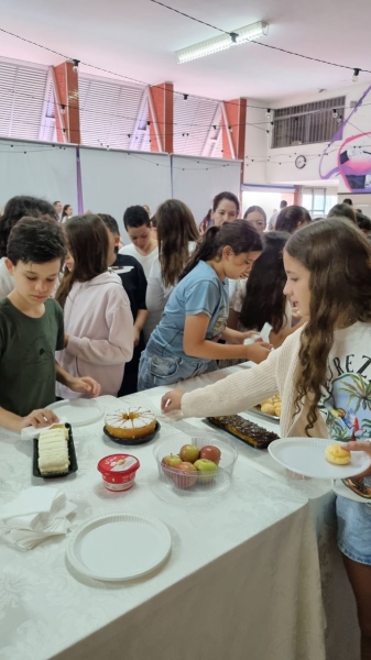 Para completar essa experiência tão especial, após a celebração os alunos participaram da aguardada Noite do Pijama, um momento de convivência, alegria e integração entre os colegas. E, na manhã seguinte, as famílias se reuniram na escola para um café da manhã afetuoso, finalizando a passagem de ciclo com presença, acolhimento e muita alegria compartilhada.
