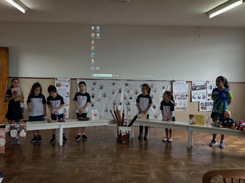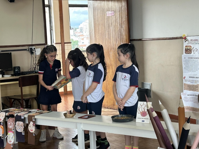 Na acolhida do dia 04 de novembro, recebemos com muita alegria as turmas do 1º ano das professoras Solange e Nayra. Elas desenvolveram um projeto incrível sobre a Melanina, e tiveram participação no Instituto Federal com o tema: “Melanina: pigmento de história, identidade e esperança.”
