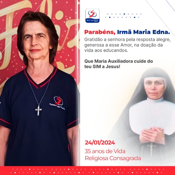 Com profundo respeito, admiração e gratidão, queremos expressar nosso reconhecimento pelos 35 anos de sua dedicada vida religiosa. Sua entrega generosa, seu amor incondicional a Deus e sua missão incansável em servir aos irmãos e irmãs são fontes de inspiração para todos nós.