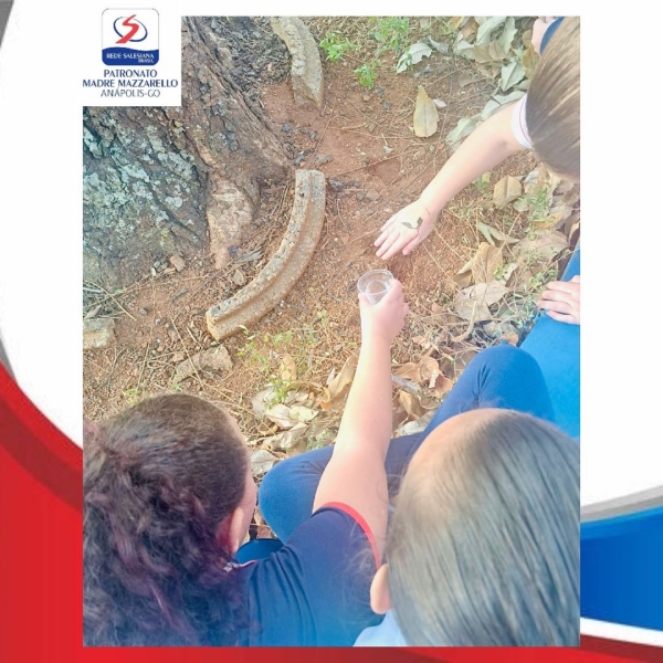 Os alunos derramaram individualmente um pouco e muita água no solo, e perceberam que essa água era totalmente absorvida. E as dúvidas começaram....