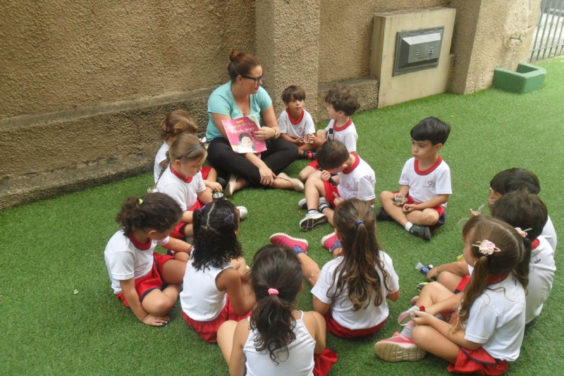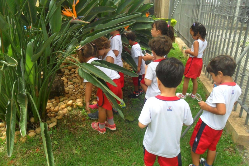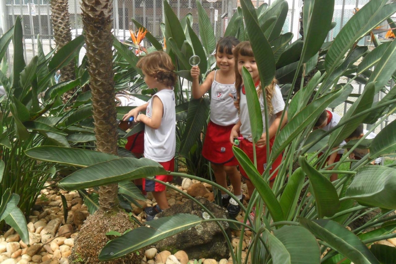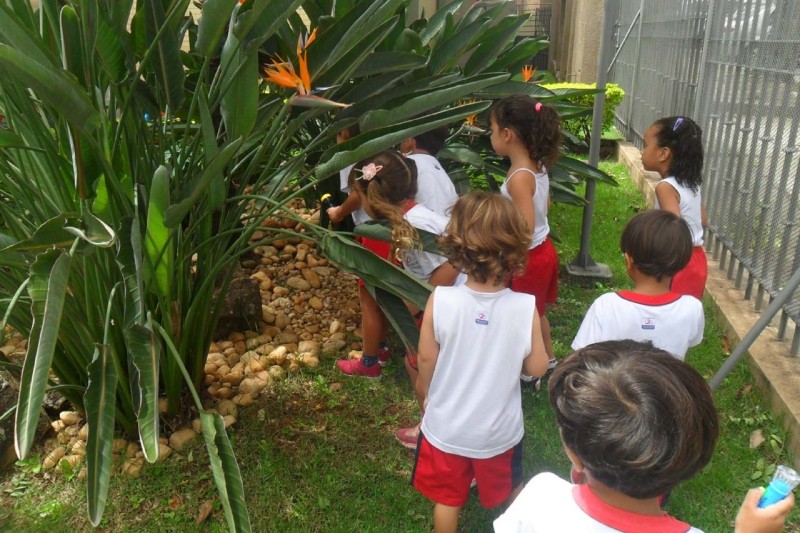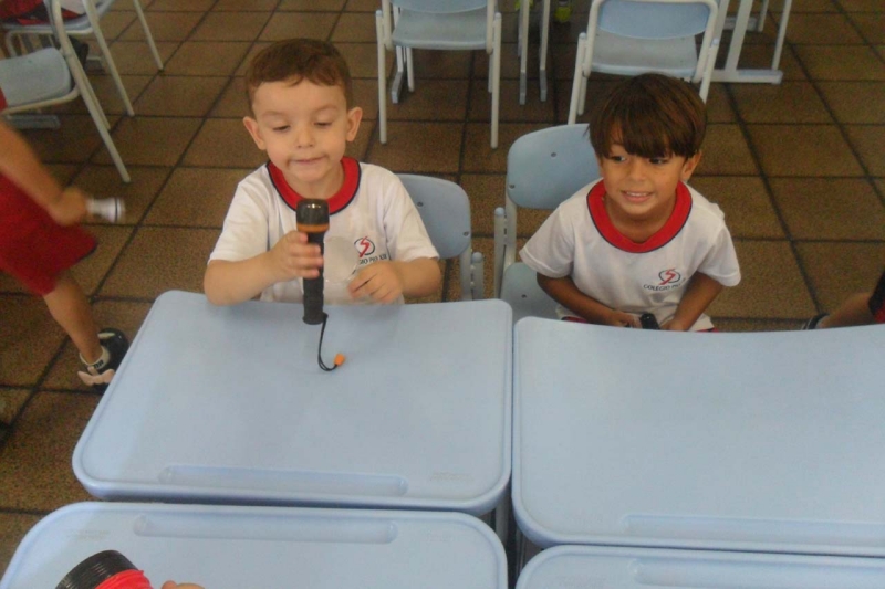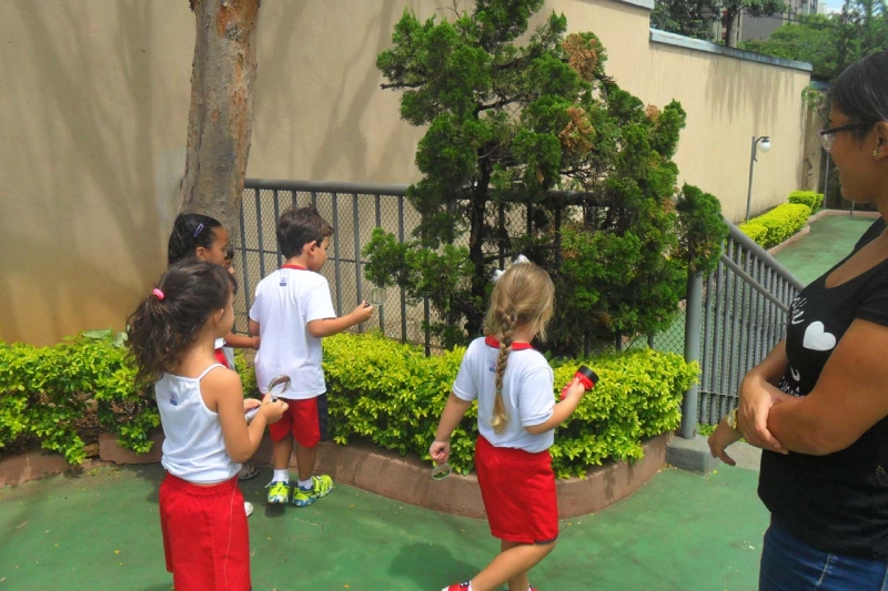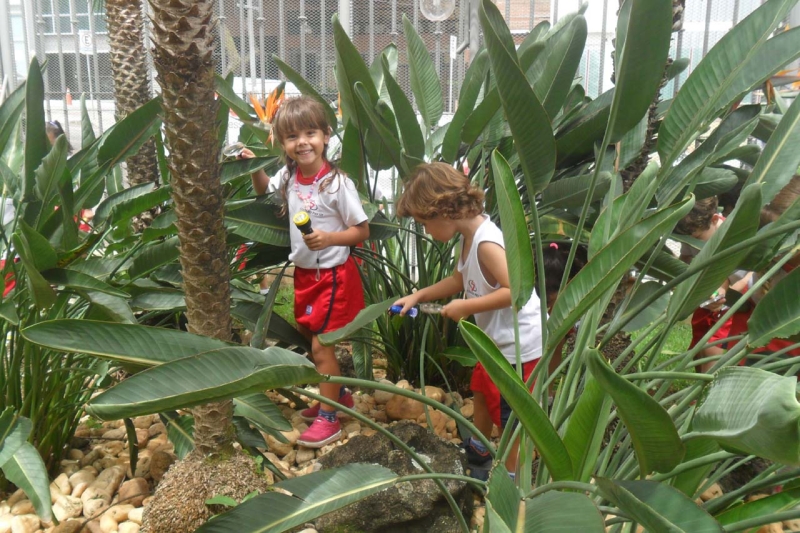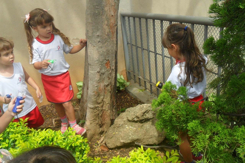 Com uma lupa e uma lanterna, os estudantes do Infantil II realizaram uma atividade inédita: encontraram no jardim do Colégio uma Cápsula do Tempo com cartas, músicas, estilos de roupas, fotos e recordações de Chiquinha Gonzaga.