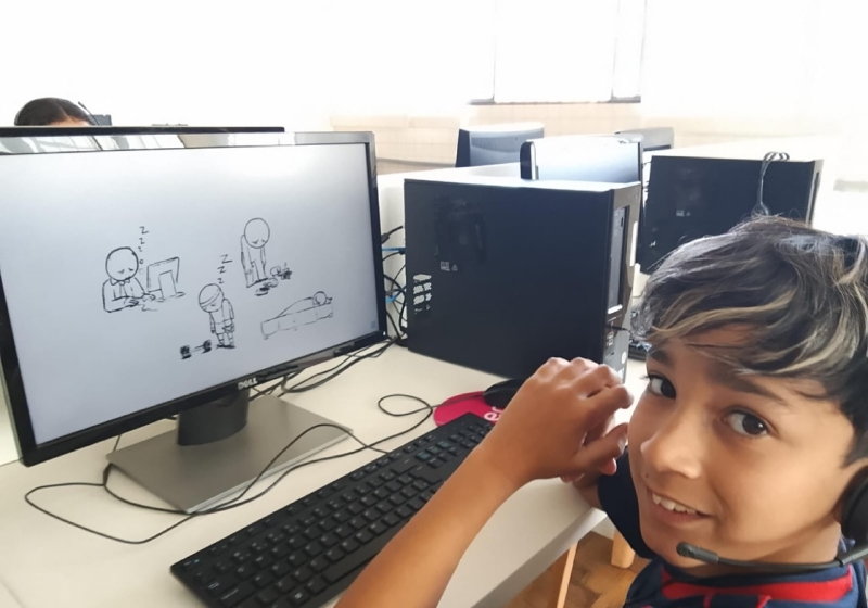 Na oficina Enteração na era digital, no dia 20 de agosto, continuamos abordando o tema “Saúde mental e impacto das redes sociais” pois cuidar da saúde mental de crianças e adolescentes é essencial. O uso constante da internet pode trazer ansiedade, comparações e pressões, mas também pode ser uma aliada quando usada com equilíbrio. Trabalhar esse tema ajuda os jovens a reconhecer sentimentos, fortalecer a autoestima e ter relações mais saudáveis, dentro e fora das telas.