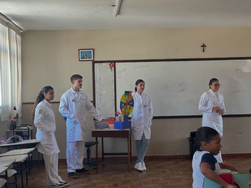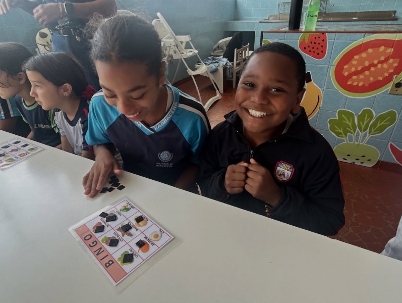 Dia 27 de novembro - Nutrição - Quando a faculdade entra em cena, até o bingo vira saudável! Foi uma tarde de diversão, alegria, aprendizados e muitas descobertas sobre como cuidar bem da nossa saúde - tudo com aquele toque especial de quem ama o que faz. Saboreamos laranjas deliciosas e refrescantes, porque cuidar do corpo também é viver momentos simples e cheios de sabor.